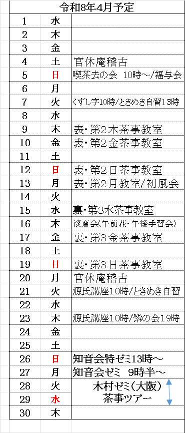 令和8年4月 茶事教室